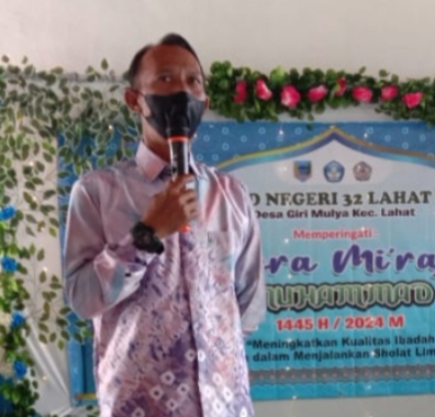 Acara peringatan isra miraj di SD negeri 32 Lahat mengusung tema meingkat kan kualitas ibadah terutama dalam melaksanakan sholat lima waktu.