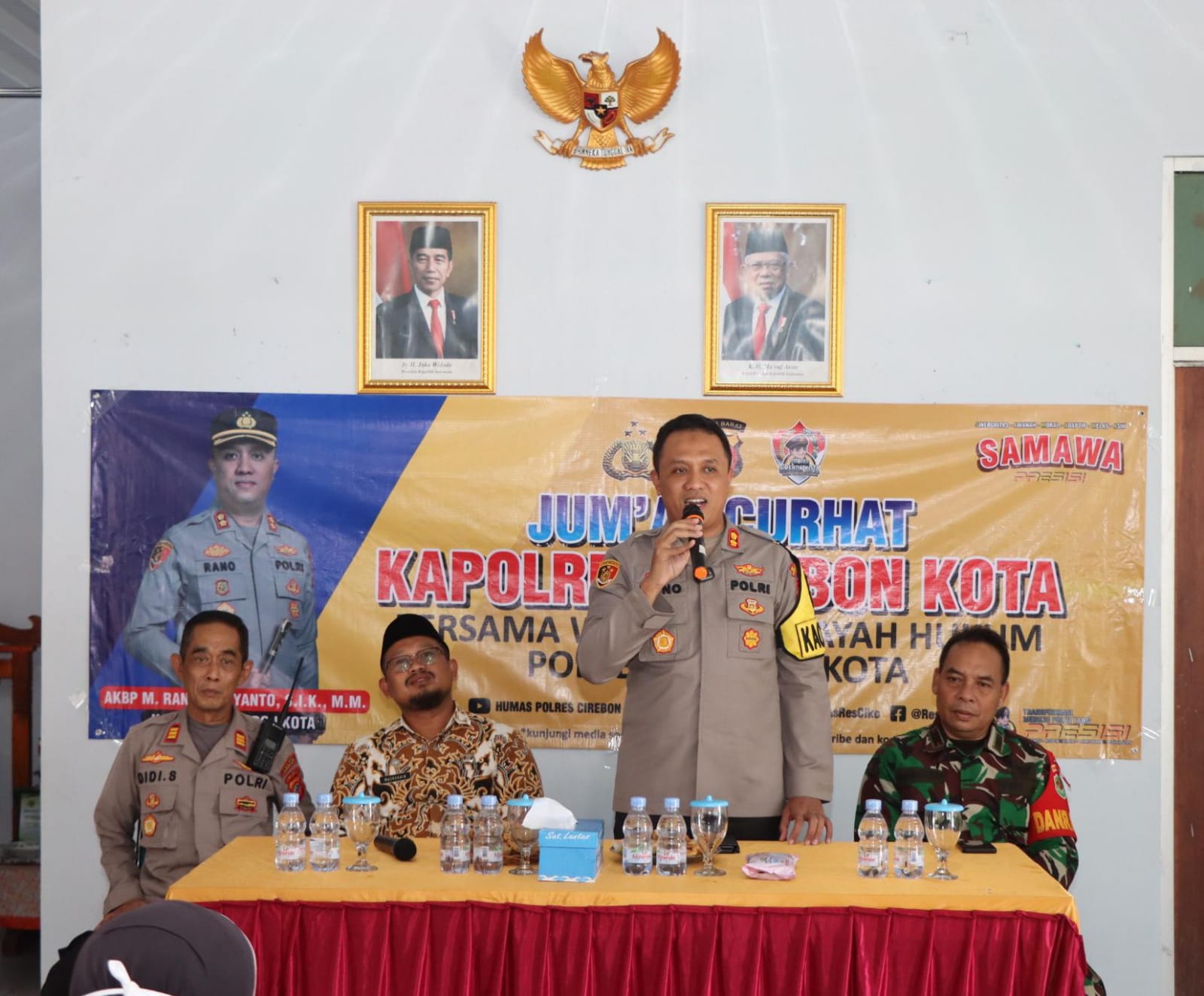 POLRES CIREBON KOTA, Patrolinews86.com – Kapolres Cirebon Kota AKBP Muhammad Rano Hadiyanto, S.Ik.,M.M kembali melaksanakan kegiatan Jum’at Curhat bersama warga Kecamatan Suranenggala, Jum’at (23/2/24).