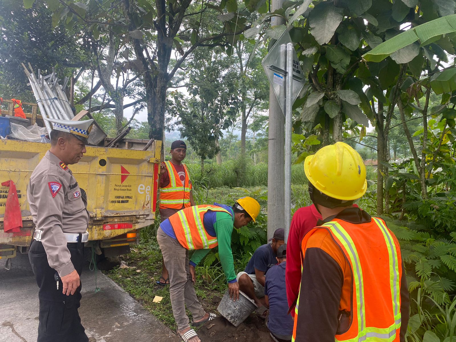 Tim gabungan Satuan Lalu Lintas (Satlantas) Polres Boyolali bersama Balai Pengelola Sarana dan Prasarana Perhubungan wilayah 3 (BPSPP) dan Dinas Perhubungan (Dishub) Kabupaten Boyolali memasang sejumlah rambu lalu lintas menjelang mudik Lebaran, Jumat (22/03/2024). Pasalnya, sudah banyak pemudik yang pulang kampung lebih awal dari Lebaran.