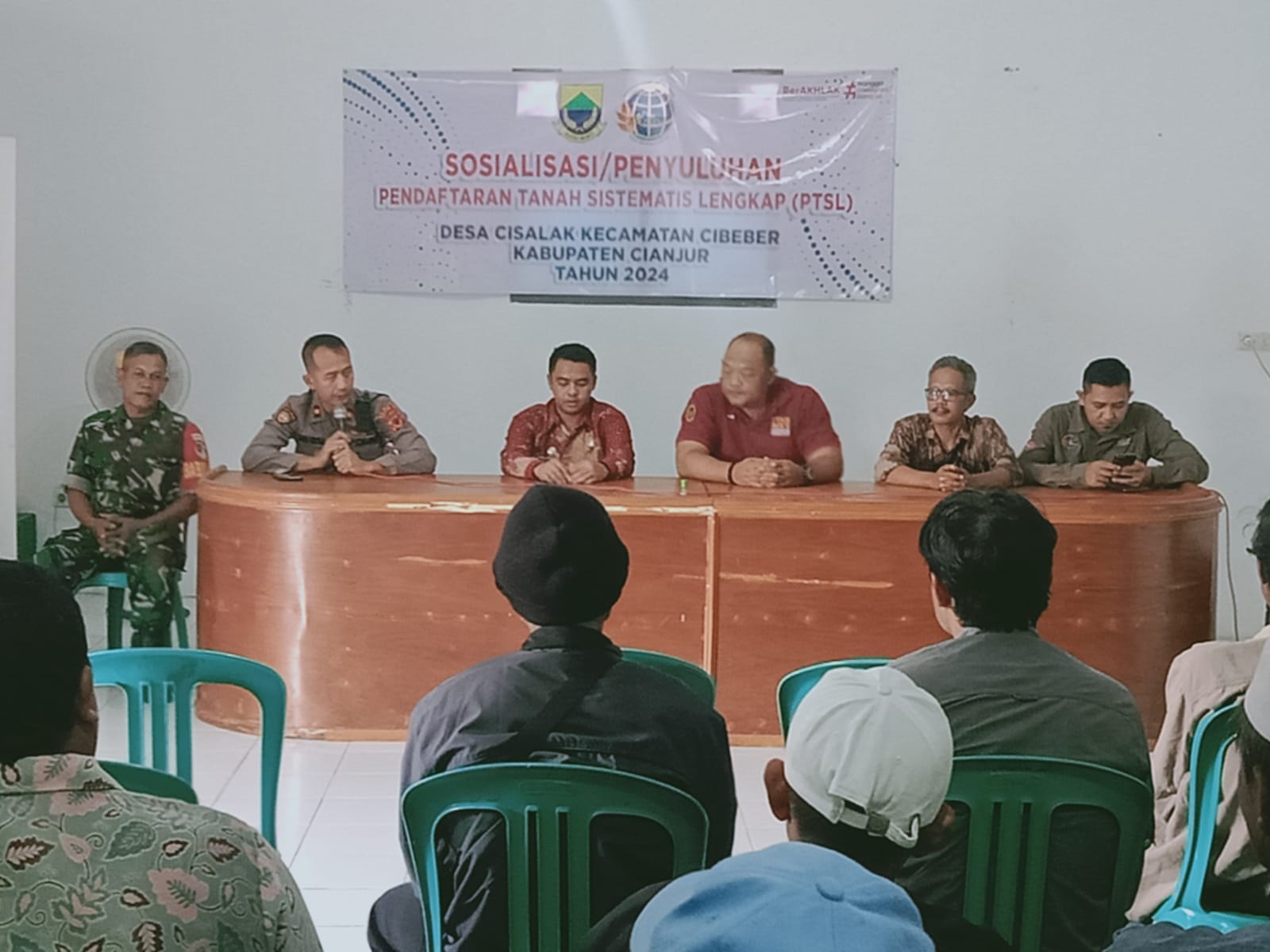 CIANJUR | patrolinews86.com, -Bertempat di ruang aula kantor kepala desa cisalak, dilaksanakan sosialisasi dan penyuluhan dalam rangka kegiatan Pendaftaran Tanah Sistematis Lengkap (PTSL) Tahun 2024 yang dihadiri oleh Tim dari Kantor ATR Pertanahan Kabupaten Cianjur, Forkopimcam , serta Kepala Desa dan jajaran perangkat desa, RT dan RW. “Kamis (28/03/2024)