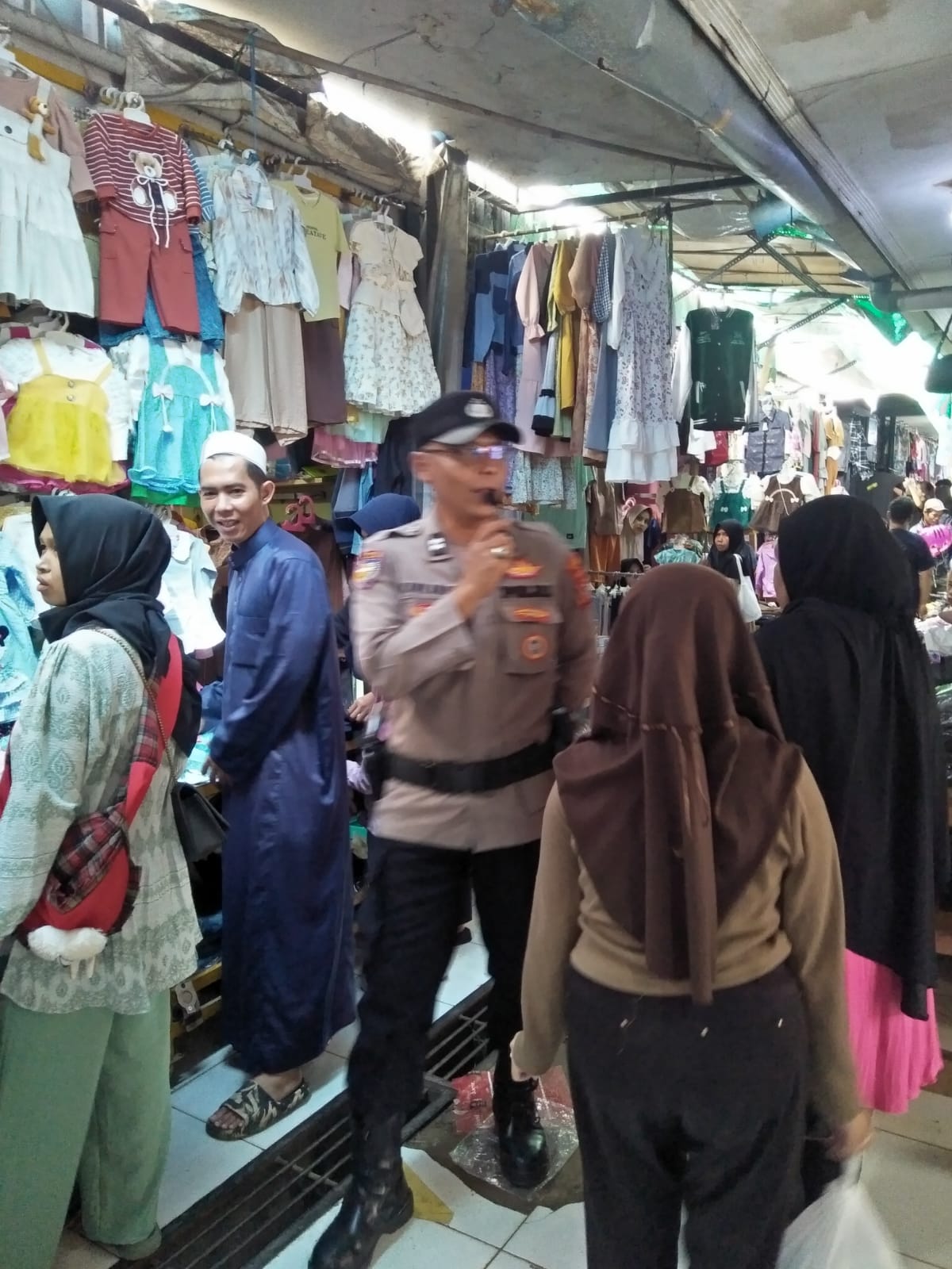 CIANJUR | patrolinews86.com, -Polres Cianjur, Polsek Cibeber melalui Bhabinkamtibmas Desa Cikondang Aiptu Kankan Nurul Huda Bersama anggota Pospam lainnya laksanakan patroli sekaligus menyampaikan himbauan kepada masyarakat yang sedang belanja di pusat perbelanjaan (Pasar Cibeber) menjelang Lebaran di Kecamatan Cibeber Kabupaten Cianjur, “Senin (08/04/2024)