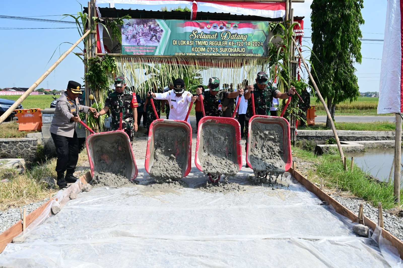 Pembukaan TMMD Reguler ke – 120 TA 2024 Kodim 0726/Sukoharjo dihadiri Danlanud Adi Soemarmo Marsma TNI Bambang Juniar Djatmiko, S.Sos., M.M., Danrem 074/Warastratama Kolonel Inf Ali Akhwan, S.E., Dandim 0726/Sukoharjo Letkol Czi Slamet Riyadi, S.E., serta Kapolres Sukoharjo AKBP Sigit, S.I.K., M.H. dan Jajaran Forkopimda Sukoharjo.