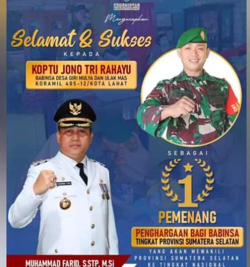 Lahat—–Sumsel : Patrolinews86.com -Salah satu Anggota Komando Distrik Militer (Kodim) Lahat, Koptu Joni Tri Rahayu, bertugas sebagai Babinsa Desa Giri Mulya dan Ulak Mas, Kecamatan Kota Lahat.