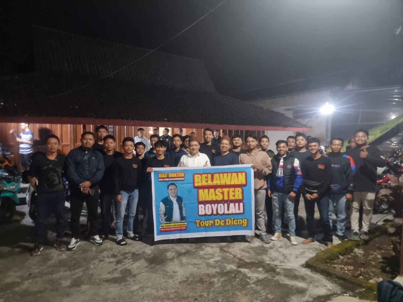 Puluhan motor berjejer rapi siap mengantarkan pengemudinya melakukan perjalanan. Sementara di dalam joglo tampak puluhan pemuda sedang ramah tamah dengan Calon Bupati Boyolali drg. Fauzan Arif Munandar (Master). Tepat pukul 00.00 Wib, Minggu(26/05/2024), sebanyak 50 pemuda dari Komunitas “Kumpul Manfaat” dan Relawan Master Boyolali (RMB) berangkat melakukan kegiatan Tour de Dieng.