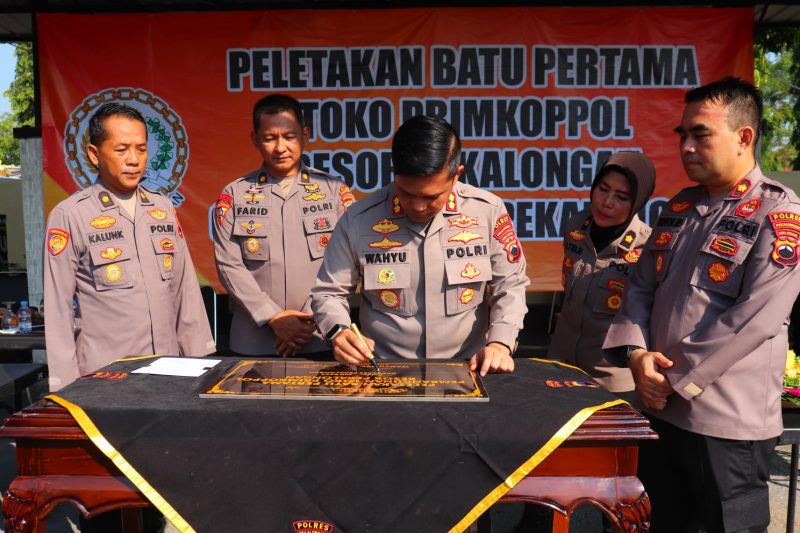 Selain melakukan peletakan batu pertama, AKBP Wahyu Rohadi juga menuliskan tanda tangan pada prasasti toko Primkoppol Polres Pekalongan.