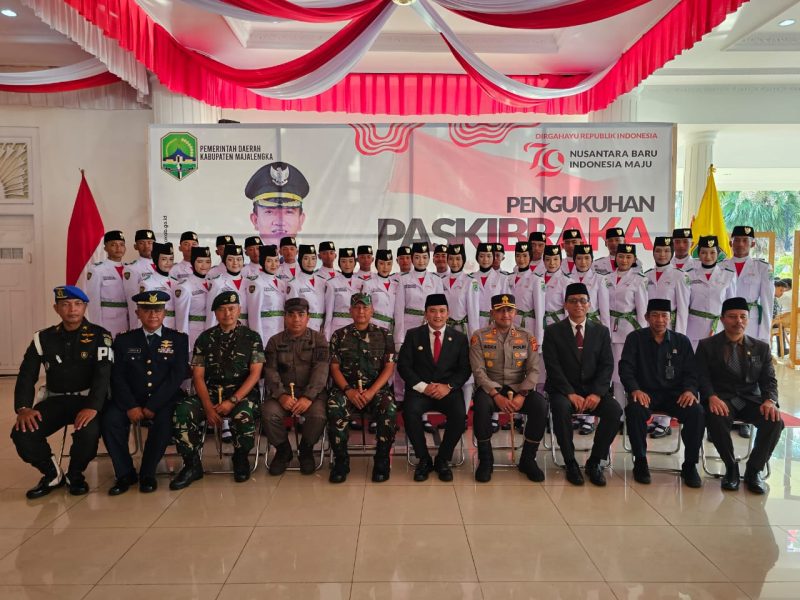Penjabat Bupati Majalengka, Dedi Supandi mengukukuhkan 32 anggota Pasukan Pengibar Bendera Pusaka (Paskibraka) pada peringatan HUT Kemerdekaan Republik Indonesia ke-79 tingkat Kabupaten Majalengka, bertempat di Pendopo Gedung Negara, Kamis ( 15/08/2024 ).