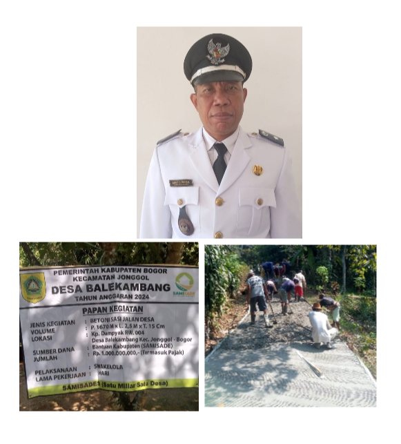 Bogor Patrolinews86.com – Program unggulan Pemerintah Kab. Bogor berupa satu miliar satu desa (samisade) untuk percepatan pembangunan serta pemulihan ekonomi di tingkat desa, sebagai upaya untuk mendukung insfrastruktur desa bagi kenyamanan aksebilitas warga masyarakat yang berharap dapat berdampak bagi kesejahteraan masyarakat secara berkelanjutan. Akan tetapi program tersebut sudah keluar dari marwah program samisade, salah satunya yang terjadi di Desa Balekambang Kec.Jonggol.