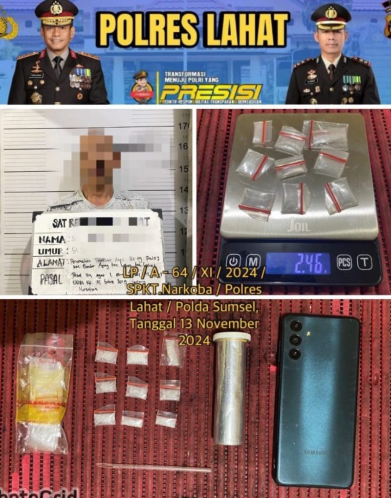Satuan Reserse Narkoba Polres Lahat berhasil mengungkap kasus tindak pidana narkotika di wilayah hukum mereka pada Rabu, 13 November 2024. Tim yang dipimpin oleh AKP Khairudin, SH, berhasil mengamankan seorang pria berinisial S (51), warga Kelurahan Bandar Agung, Kecamatan Lahat. S diduga terlibat sebagai pengedar narkotika jenis sabu. Jum’at (15/11/2024)
