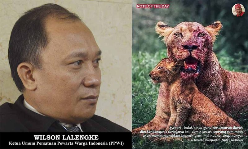 Wilson Lalengke adalah sosok yang dikenal dengan keteguhannya dalam memperjuangkan hak-hak jurnalis dan anggota organisasi yang ia pimpin. Sama seperti induk singa yang rela berlumuran darah dan kehilangan satu taringnya demi melindungi anak-anaknya, Wilson Lalengke juga tidak ragu untuk bertarung melawan berbagai rintangan dan bahaya demi kesejahteraan dan keamanan anggotanya. Dalam dunia jurnalistik yang penuh tantangan, di mana sering kali ancaman terhadap kebebasan berbicara atau keselamatan para jurnalis datang dari berbagai pihak, seorang pemimpin seperti Wilson Lalengke sangat dibutuhkan.