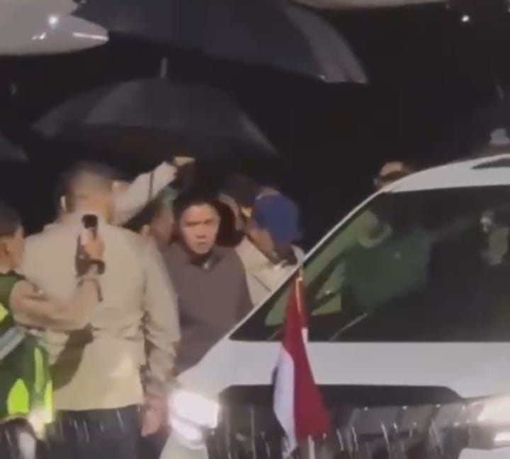 Prabowo tiba di hotel pukul 19.34 Wita. Setiba di hotel, Prabowo disambut Pj Wali Kota Kupang Linus Lusi dan pihak manajemen hotel.