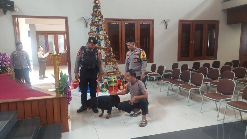 Polres Pekalongan Kota – Polda Jateng – Patrolinews86.com – Tim Unit Satwa (K9) Satsamapta Polres Pekalongan Kota, melakukan sterilisasi gereja di Kota Pekalongan, Kegiatan dilakukan untuk menjamin pelaksanaan ibadah dan perayaan Natal 2024 di Kota Pekalongan berjalan dengan aman, nyaman dan lancar.