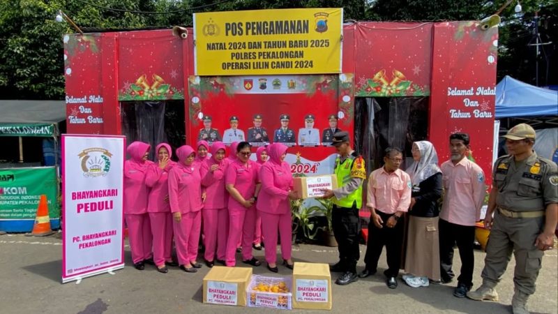Ketua Bhayangkari cabang Pekalongan Ny. Dika Doni Prakoso beserta pengurus melaksanakan kunjungan ke pos pam dan pos yan Ops Lilin Candi 2024, Sabtu (28/12).