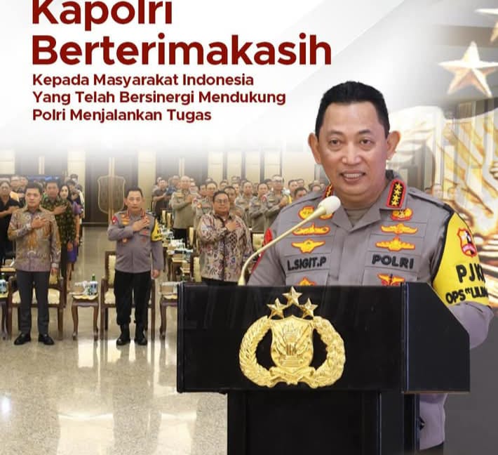 Selain itu, Kapolri juga berterima kasih kepada seluruh masyarakat Indonesia, instansi maupun lembaga yang telah bekerja sama mendukung penuh Polri dalam menjalankan tugas sebagai aparat keamanan maupun penegak hukum.