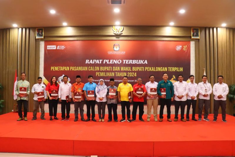 “Pada hari ini Kamis tanggal 9 bulan Januari tahun 2025, Komisi Pemilihan Umum Kabupaten Pekalongan telah melaksanakan rapat pleno terbuka penetapan pasangan calon Bupati dan Wakil Bupati Pekalongan terpilih Kabupaten Pekalongan dalam Pemilihan Tahun 2024. Pelaksanaan penetapan pasangan calon Bupati dan Wakil Bupati Pekalongan disaksikan oleh pasangan calon peserta pemilihan Bupati dan Wakil Bupati Pekalongan, Partai Politik peserta Pemilu atau gabungan Partai Politik peserta Pemilu tingkat Kabupaten Pekalongan, serta diikuti oleh Bawaslu Kabupaten Pekalongan,” kata dia.