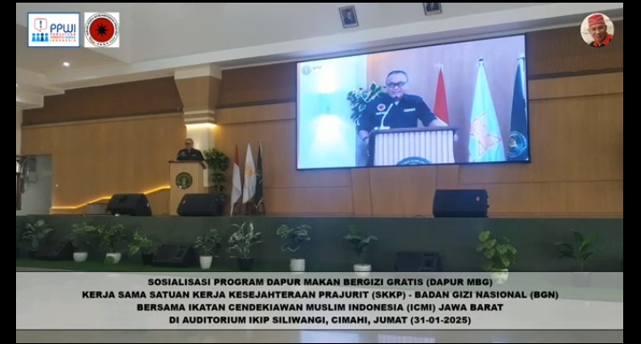 Cimahi PATROLI News86.com – Satuan Kerja Kesejahteraan Prajurit (SKKP) melakukan kegiatan Sosialisasi Program Dapur Makan Bergizi Gratis (Dapur MBG) – Badan Gizi Nasional (BGN) bertempat di Auditorium Kampus Institut Keguruan dan Ilmu Pendidikan (IKIP) Siliwangi, Cimahi, Bandung, Jawa Barat, Jumat, 31 Januari 2025. Kegiatan itu terselenggara berkat kerjasama dengan Pengurus Organisasi Wilayah (Orwil) Ikatan Cendekiawan Muslim Indonesia (ICMI) Jawa Barat.