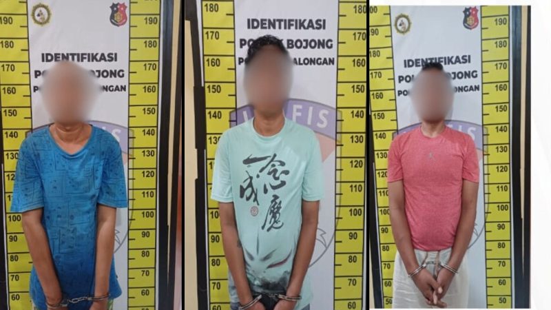 Dari pengaduan pihak sekolah SDN 1 Pantianom tersebut, petugas selanjutnya bergerak cepat melakukan penyelidikan. Dengan dibackup oleh tim Resmob Polres Pekalongan dan Unit Reskrim Polsek Bojong, ketiga pelaku berhasil diamankan petugas.