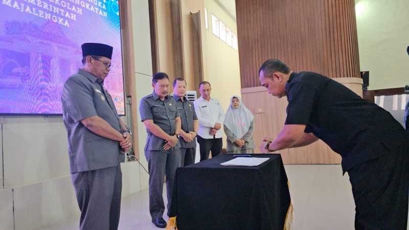 Bupati Majalengka, H. Eman Suherman melantik dan menyerahkan Petikan Surat Keputusan (SK) tentang Pemberhentian dan Pengangkatan Guru sebagai Kepala Sekolah di Lingkungan Dinas Pendidikan Kabupaten Majalengka sebanyak 58 orang, bertempat di Aula Dinas Pendidikan, Rabu (05/03/2025).