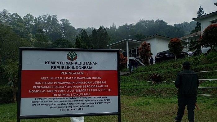 Keterangan Foto: Sejumlah bangunan diatas lahan Hutan Produksi yang disegel Ditjen Gakkum Kementerian Linkungan Hidup karena berdampak terhadap fungsi kawasan. Selain PTPN, Perhutani juga disebut terlibat dalam pengrusakan kawasan Puncak