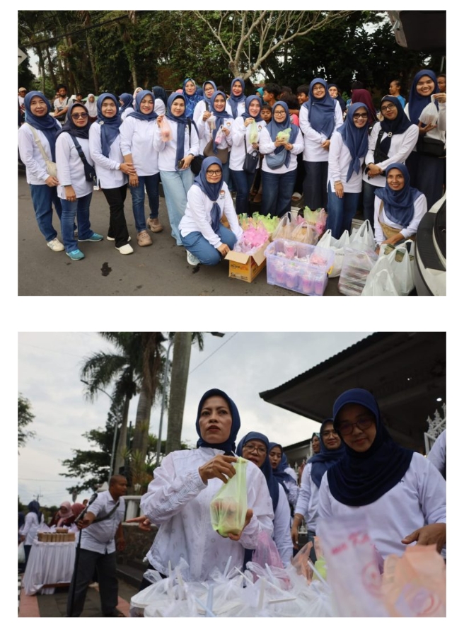 Disela-sela pembagian takjil berlangsung, Pembina DWP Kab. Kuningan, Hj. Ela Dian Rachmat Yanuar, menyampaikan bahwa kegiatan ini merupakan bentuk kepedulian dan solidaritas kepada masyarakat yang menjalankan ibadah puasa.