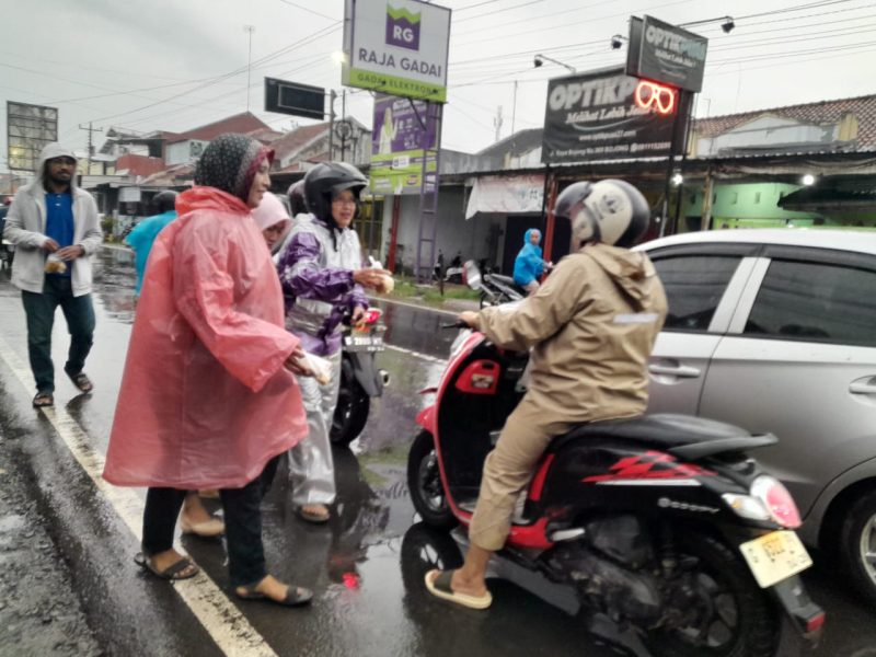 Meski Diguyur Hujan, Insan Pers Jawa Tengah ( IPJT ) Pekalongan Raya Bagikan Ratusan Paket Takjil Untuk Warga Masyarakat yang melintas di Pasar Bojong .