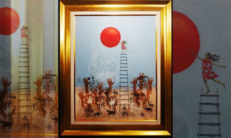 Jakarta patrolinews86.com – Sebuah lukisan unik dan sarat makna dipamerkan di Gedung Pusat Ilmu Pengetahuan dan Kebudayaan Rusia, Jakarta, pada 19-21 Maret 2025. Lukisan ini menampilkan bulatan merah besar yang sekilas mengingatkan pada simbol bendera Jepang, tetapi sebenarnya menggambarkan impian penguasa yang tampak indah, namun berisiko tinggi dan penuh gejolak.