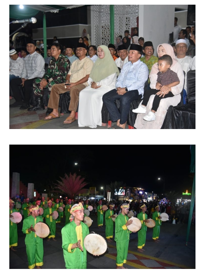 Wakil Bupati Kuningan, Hj. Tuti Andriani, S.H., M.Kn., serta unsur Forkopimda turut hadir, menyaksikan kemeriahan yang semakin lengkap dengan penampilan seni Rampak Genjring Siwindu dari Winduhaji. Alunan musik tradisional bernuansa islami semakin menghidupkan suasana.