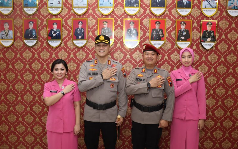 AKBP Riki Yariandi, S.H., S.I.K., M.H. didampingi istri selanjutnya memotong rangkaian bunga melati sebelum memasuki ruang Loby Mapolres Pekalongan Kota, Kenal pamit dilaksanakan melalui Laporan Kesatuan di Aula Mapolres dan apel Kesatuan yang dilaksanakan di halaman Mapolres Pekalongan Kota, Kamis (17/04/2025).