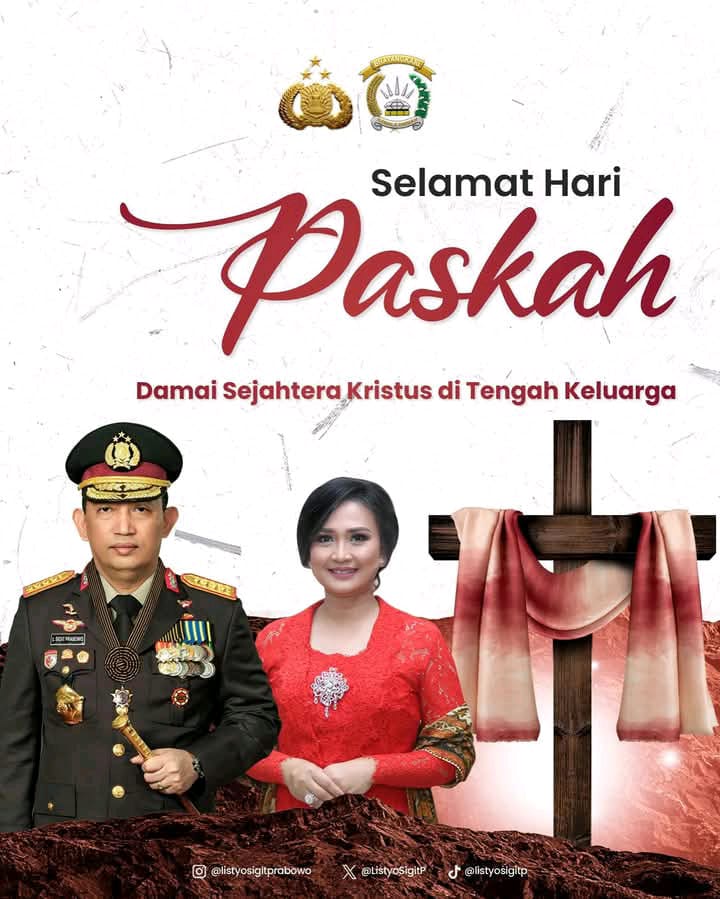 Selamat Paskah bagi seluruh umat Kristiani, kiranya kebangkitan Kristus menjadi panggilan untuk hidup baru bagi umatnya dan kasih Allah menyertai langkah kita dalam mewujudkan cita-cita bersama menuju Indonesia Maju, Indonesia Emas 2045.