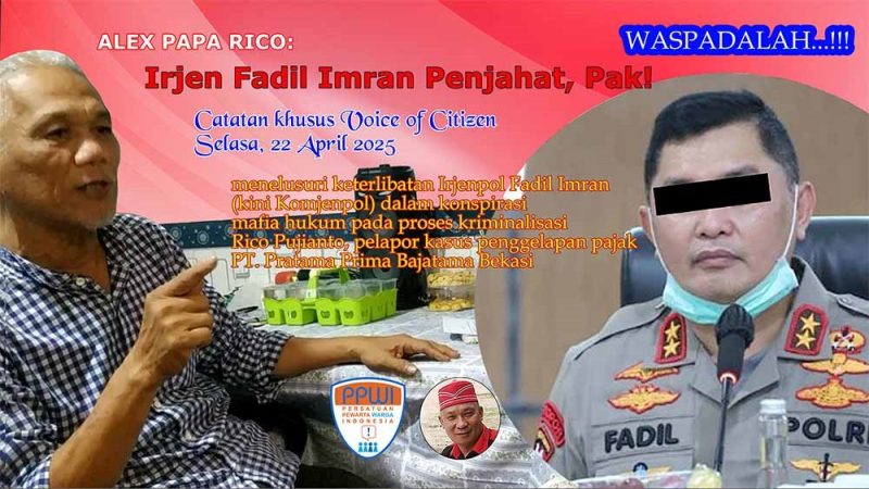Jakarta patrolinews86.com – Sebuah video berdurasi 20 menit yang diunggah ke YouTube dengan judul bombastis “Heb0h..!!! F4dil Imran P3njah4t…???” sontak menyita perhatian warganet. Dalam tayangan tersebut, seorang pria bernama Alex Papa Rico—yang mengaku sebagai ayah kandung dari Rico Pujianto—melontarkan tuduhan serius terhadap Irjen Fadil Imran, perwira tinggi Polri yang kini menjabat sebagai Kepala Badan Pemelihara Keamanan (Kabaharkam) Polri.