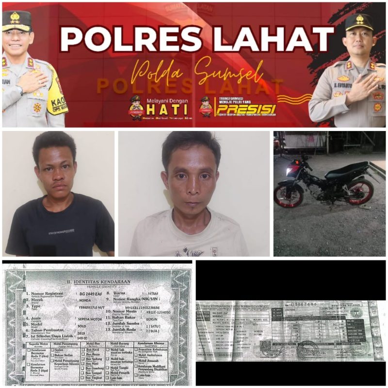Kapolres lahat AKBP Novi Edyanto SIK.MIK yang diwakili Kasubsi humas polres lahat Aiptu liespono SH Menjelaskan Kronologis kejadian setalah mendapatkan laporan dari korban Defi Apri bin sukaini, bersama saksi deoga austra bahwa pada hari Jumat tanggal 25 April 2025 sekira pukul 03:00 wib dirumah korban telah terjadi pencurian dengan pemberatan, sepeda motor Honda SONIC warna hitam BG 2445 EAF diteras rumah Herman Didesa Sukajadi Kecamatan Pseksu, kabupaten lahat.