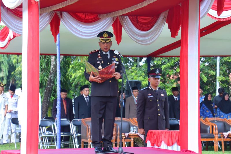 Menurut Kapolres, sejak awal, para pendiri bangsa telah meletakkan prinsip yang menjadi jangkar kita dalam menghadapi dunia, politik luar negeri yang bebas dan aktif. Dalam arus globalisasi yang semakin kuat, kita bersyukur bahwa Indonesia terus melangkah dengan tenang, menjaga keseimbangan antara keterbukaan dan kemandirian. Prinsip politik luar negeri bebas aktif, yang telah menjadi pedoman sejak awal kemerdekaan, senantiasa menuntun langkah kita.
