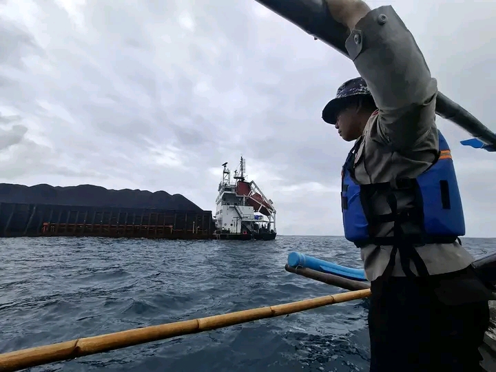 Sebuah Kapal Tongkang Berlabuh di Perairan Santolo Garut, Satpolairud Lakukan Pemeriksaan