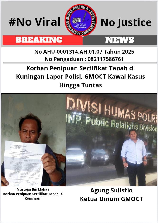Korban Penipuan Sertifikat Tanah di Kuningan Lapor Polisi, GMOCT Kawal Kasus Hingga Tuntas