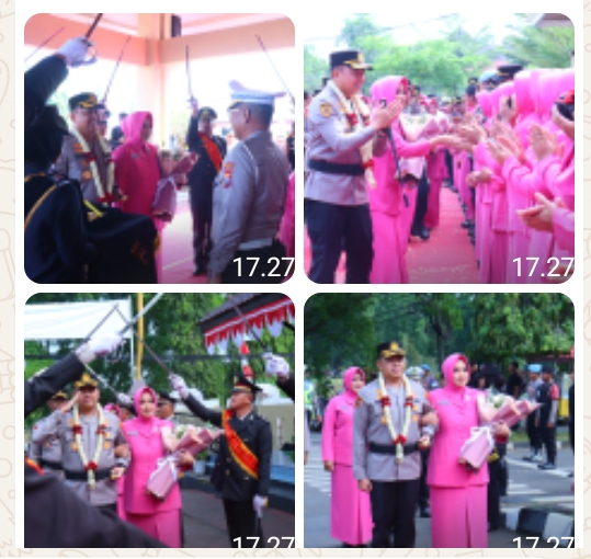 Kedatangan AKBP Rachmad bersama Ketua Bhayangkari Cabang Pekalongan disambut hangat oleh Wakapolres Pekalongan Kompol Muhammad Nurkholis, S.H., yang mengalungkan bunga di pintu gerbang Mapolres. Prosesi dilanjutkan dengan tradisi Pedang Pora yang khidmat, di mana jajaran perwira berbaris rapi membentuk gerbang kehormatan, mengiringi langkah sang Kapolres baru dengan penuh penghormatan.