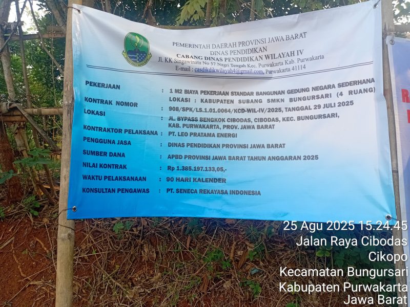 Tapi jika menurut saya,Kata Saeful Yinus.SE.MM. ada dugaan kecurigaan kami pada penulisan papan Informasi Kegiatan yang saat ini sedang di kerjakan oleh PT..LEO PRATAMA ENERGI. Selain itu,kata Saeful Yunus. Proyek pembangunan untuk gedung baru SMKN 1 Bungursari itupun Material nya diduga tidak layak di gunakan sebab Pasir nya seakan tidak bagus, kemudian ada papan informasi kegiatan bertuliskan aturan umum berlaku bagi karyawan, Vendor/ Supplier, Petugas Angkutan, Kontraktor dan Tamu.