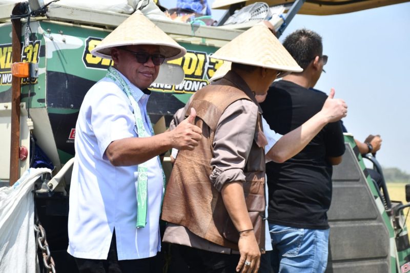 ” Pertanian di Majalengka surplus, terutama pada komoditas padi dan jagung, dengan ditopang oleh lahan yang subur dan sistem irigasi yang baik. Surplus ini menunjukkan produksi melebihi kebutuhan lokal dan memungkinkan pengiriman hasil pertanian ke wilayah luar Majalengka, ” hal tersebut dikatakan Bupati Majalengka, H.Eman Suherman saat panen padi bersama Wakil Menteri Pertanian pada Peringatan Hari Tani Nasional di Kandanghaur, Rabu (24/09/2025).