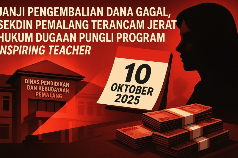 Janji pengembalian dana program Inspiring Teacher 2025 oleh Dinas Pendidikan dan Kebudayaan (Dindikbud) Kabupaten Pemalang belum juga terealisasi hingga lewat tenggat 10 Oktober 2025. Kondisi ini memicu kritik publik dan sorotan hukum terhadap pejabat terkait.