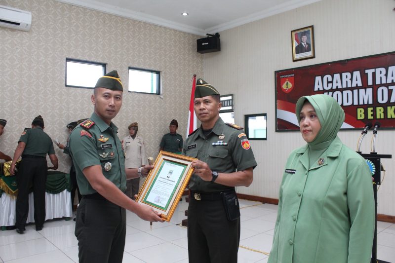 Suasana haru namun penuh kebanggaan menyelimuti Aula Makodim 0724/Boyolali saat Komandan Kodim 0724/Boyolali Letkol Inf Dhanu Anggoro Asmoro, S.E. memimpin acara korps raport pindah satuan bagi salah satu Perwira terbaiknya, Kapten Inf Kamami, Senin (27/10/2025).