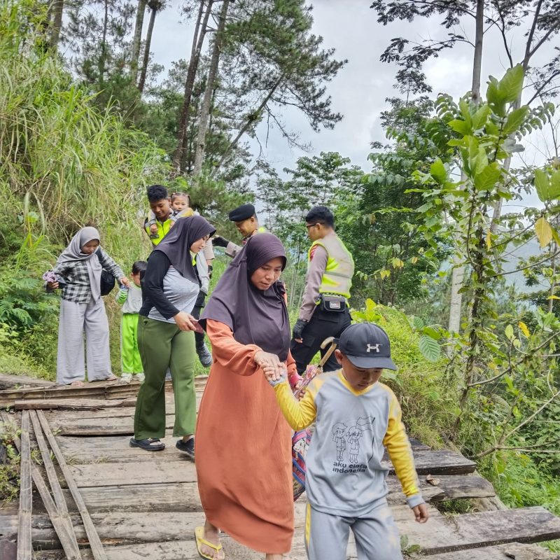 Setelah melakukan pengecekan beberapa hari sebelumnya, Polres Pekalongan langsung bergerak cepat mengerahkan personel untuk melakukan kerja bakti di lokasi Jembatan Penghubung Desa Trajumas dan Desa Bodas, Kecamatan Kandangserang. Jembatan kayu sepanjang 10 meter yang rusak parah ini merupakan akses vital, terutama bagi pelajar sekolah.
