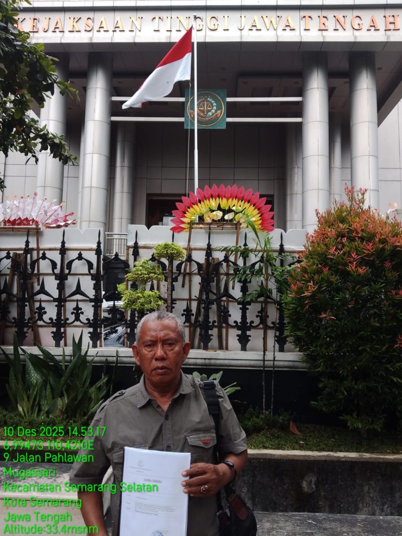 Dorongan masyarakat untuk memastikan transparansi dan akuntabilitas pengelolaan dana desa kembali menjadi sorotan public . Salah satu masyarakat Pekalongan, Ali Rosidin, resmi melaporkan dugaan penyimpangan Dana Desa Wonokerto Wetan, Kecamatan Wonokerto, Kabupaten Pekalongan, ke Kejaksaan Tinggi Jawa Tengah. Penyerahan dokumen tersebut telah diterima secara administratif oleh PTSP Kejati Jateng dengan bukti tanda terima bernomor LP.001/PKL-XII/2025 di kantor Kejati Jateng, Jalan Pahlawan No.14, Kota Semarang. Rabu 10 Desember 2025,