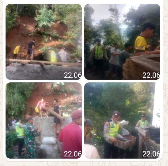 Personil Polsek Lebakbarang bersama warga setempat bergotong-royong membersihkan sisa-sisa tanah yang masih menumpuk di area rumah korban. Kapolsek juga mengimbau warga yang tinggal di bawah lereng perbukitan untuk lebih waspada, mengingat wilayah Lebakbarang merupakan zona rawan longsor saat musim penghujan. (dewi)