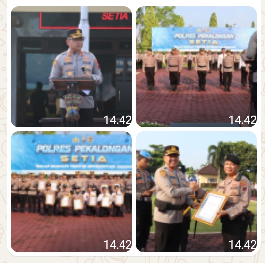 Kapolres Pekalongan AKBP Rachmad C. Yusuf, S.I.K., M.Si dalam amanatnya menyampaikan ucapan selamat serta apresiasi kepada seluruh personel yang menerima penghargaan. Ia menegaskan bahwa penghargaan tersebut merupakan bentuk pengakuan atas dedikasi dan pengabdian anggota.